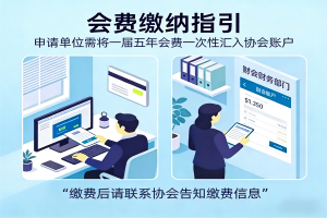 申请单位将相应会费(一届五年)一次性汇入协会账户,并再次联系并告知缴费信息。
